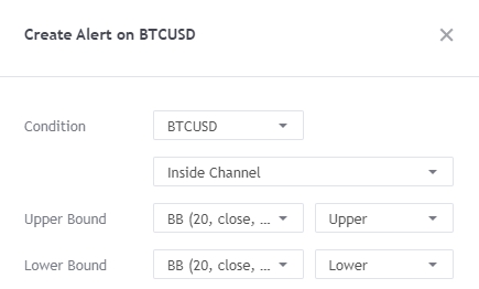 The Entering Channel condition will trigger when the element in the first drop-down menu cross-under the selected upper bound or cross-over the selected lower bound.